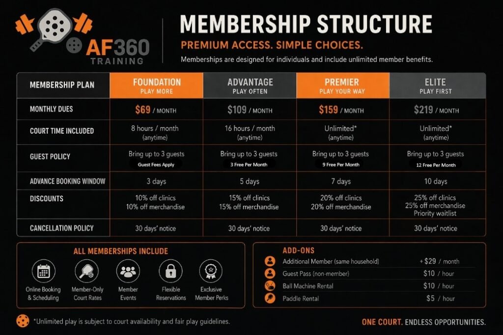 Interested in a Membership? See Pricing Table below and call to discuss!